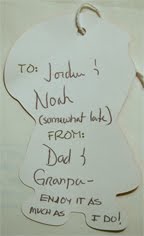 I opened the package while Erin and Noah looked on, inside something was wrapped in Christmas paper, with a note;