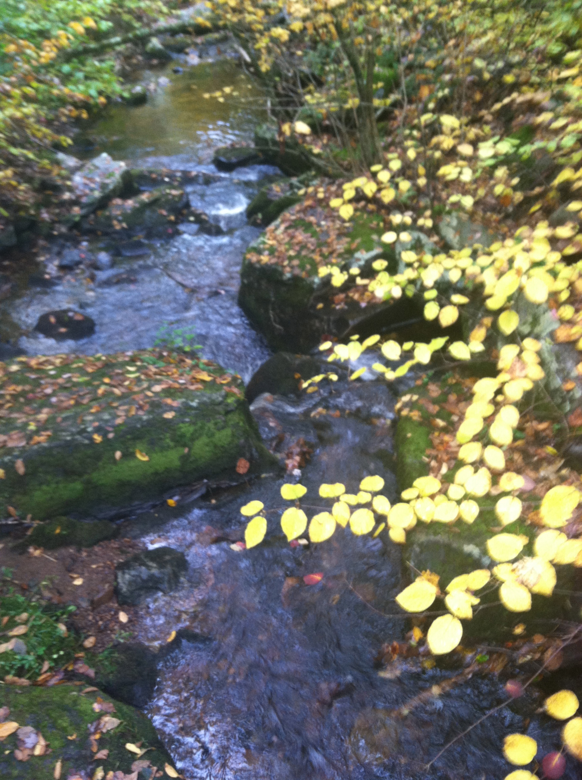 The day I ran was nothing like the one in my memory. The color was there but the sky was overcast and the ground was wet from days of rain. The pity party in my head started almost immediately. I slipped on the wet rocks almost as soon as I started, crashing hard onto the ground. Then it began to rain. Even though the thick canopy protected me from all but a few drops and the rain subsided after only a few moments, I was still ready to use it as an excuse to bail. The first mile of trail seemed to get little use and if it weren’t for the blue blazes marking the way, the trail would have disappeared into the forest. As I picked my way along the trail that was leading me back down the mountain away from my end goal, the voices of doubt grew louder. Was I going the right way? I checked the map, yet again, to make sure. My legs began to feel like blocks and I seriously thought about turning around and just going home. Guilt of not being on the road heading back to Erin and the boys was also raging at the party in my mind.