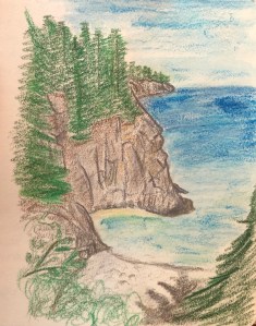 “Jasper Beach, he says,” looking up and giving me a wry smile a twinkle in his eye. “One can only bring home so many stones.”